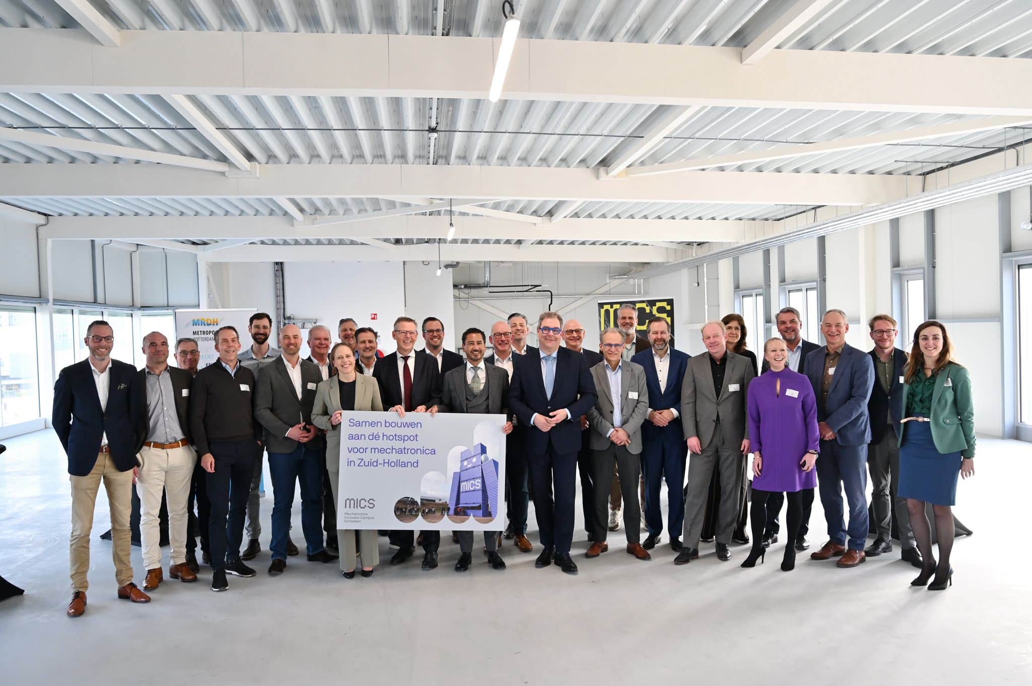 Circa dertig vertegenwoordigers van bedrijfsleven, onderwijsinstellingen en overheden tekenden op 12 maart 2026 een overeenkomst om samen de schouders te zetten onder de ontwikkeling van MICS, de Mechatronica Innovatie Campus Schiedam. Ook brancheverenigingen vanuit mechatronica, de regionale ontwikkelingsmaatschappij Innovation Quarter en de Provincie Zuid-Holland gaven bij deze gelegenheid aan de campusontwikkeling te steunen. Deze samenwerkingsovereenkomst voor de campus betekent een enorme impuls voor de innovatieve maakindustrie en werkgelegenheid in de regio.